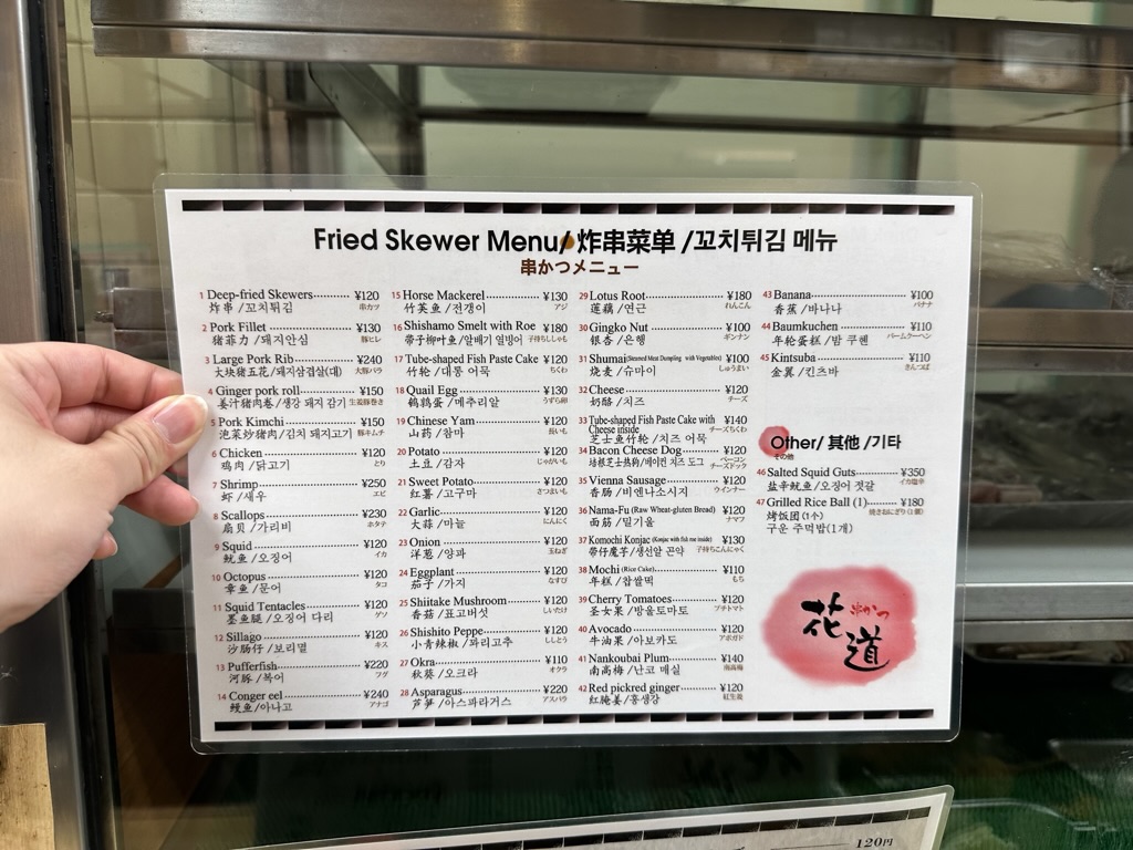1차에서 먹었던 꼬치집에서 골목길에 있는 진짜 맛집으로 들어왔다. 꼬치집 바로 앞 건물에 사람 모형이 있었지만 당황하지 않았다. 여긴 오사카니까, 여기에 있는 모든 메뉴를 다 먹어본 것 같다.