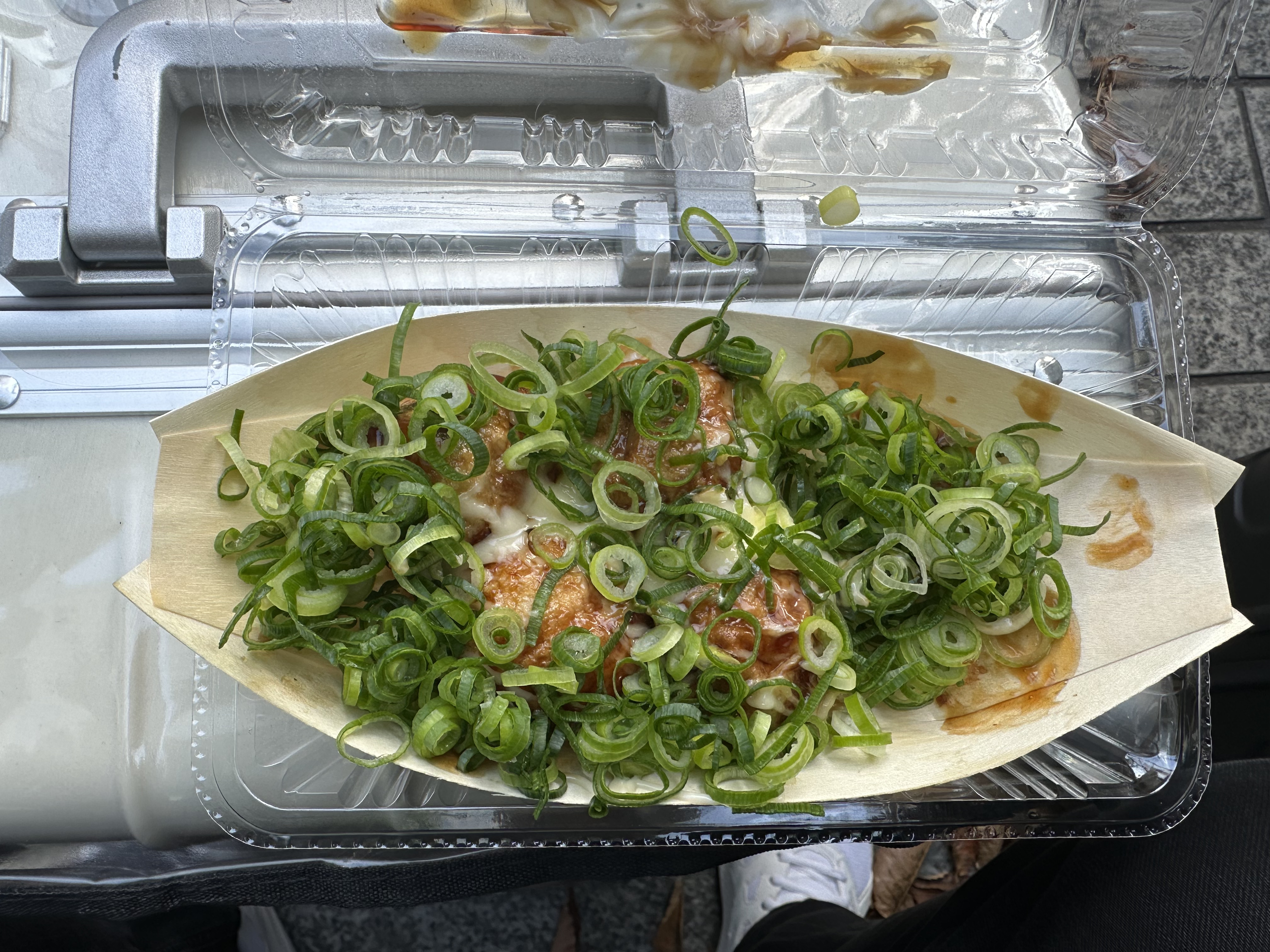교토에 가기 위해 한큐 패스를 발급받고 웨이팅 30분정도를 기다려 타코야키를 먹었다. 오사카에 처음 왔을때 탔던 대관람차다. 타코야키를 먹을 곳이 없기 때문에 한 건물의 쉼터같은 공원같은 곳인가 여기서 먹었다. 쓰레기는 당연히 잘 가져갔다.